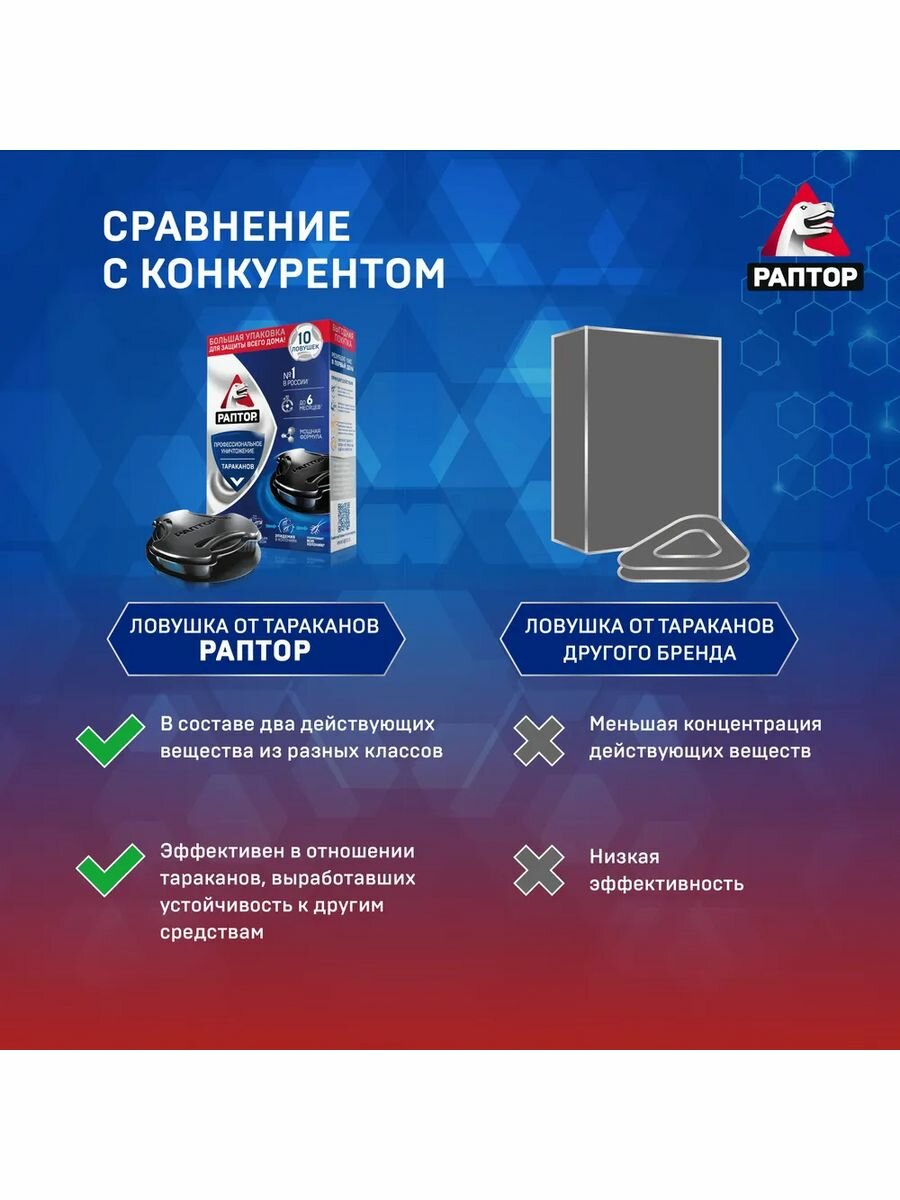 Купить Ловушка для тараканов, средство от ползающих насекомых, Раптор, защита до 6 мес, отрава, 10 штук х 2 упаковки