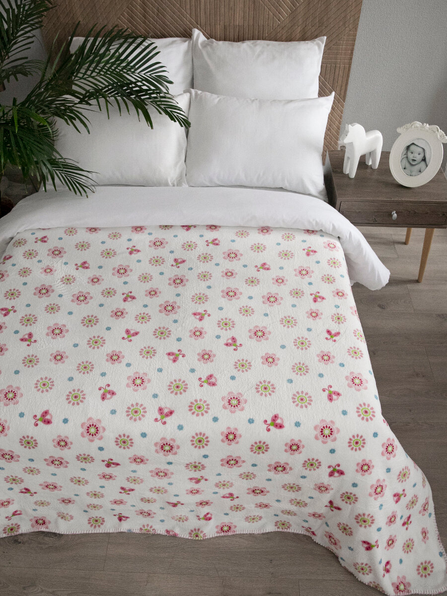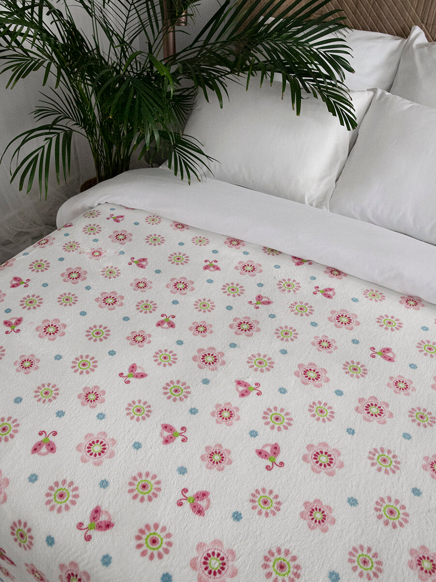 Купить Плед 150х200 детский пушистый на кровать Baby Nice "Цветы", розовый