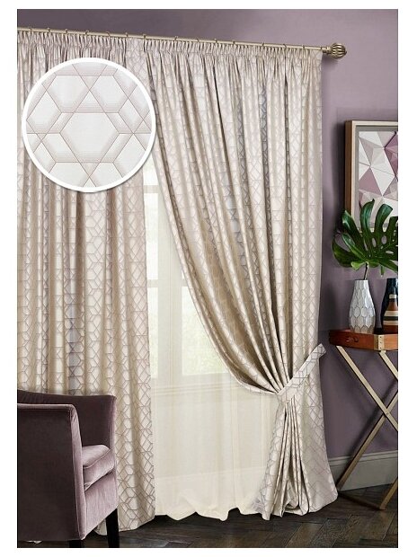 Комплект штор на тесьме Almaz 200x270 см, жаккард, бежевый, Kauffort интересное: