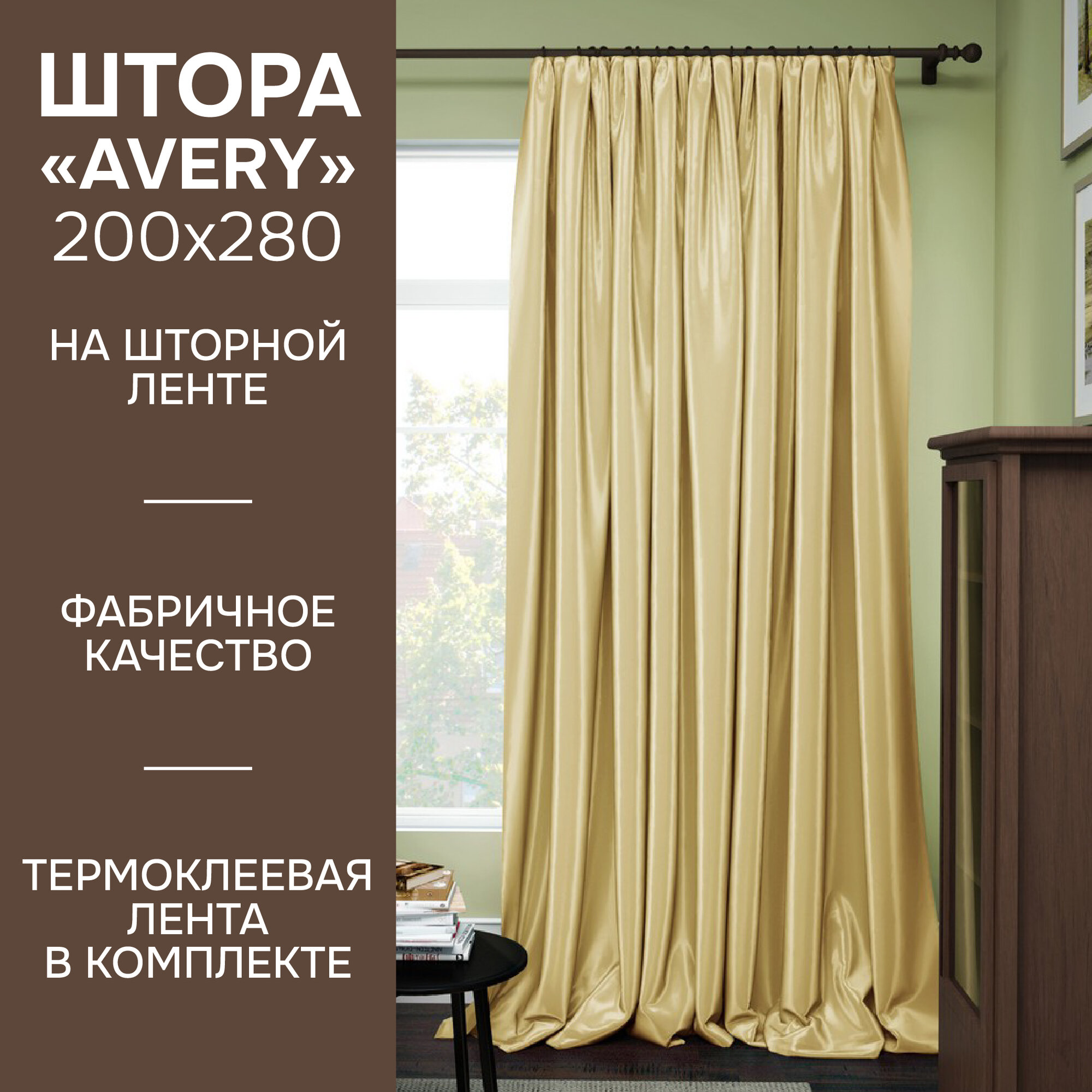 Штора на тесьме Avery 200х280 см, сатин, золотисто-бежевый, Kauffort