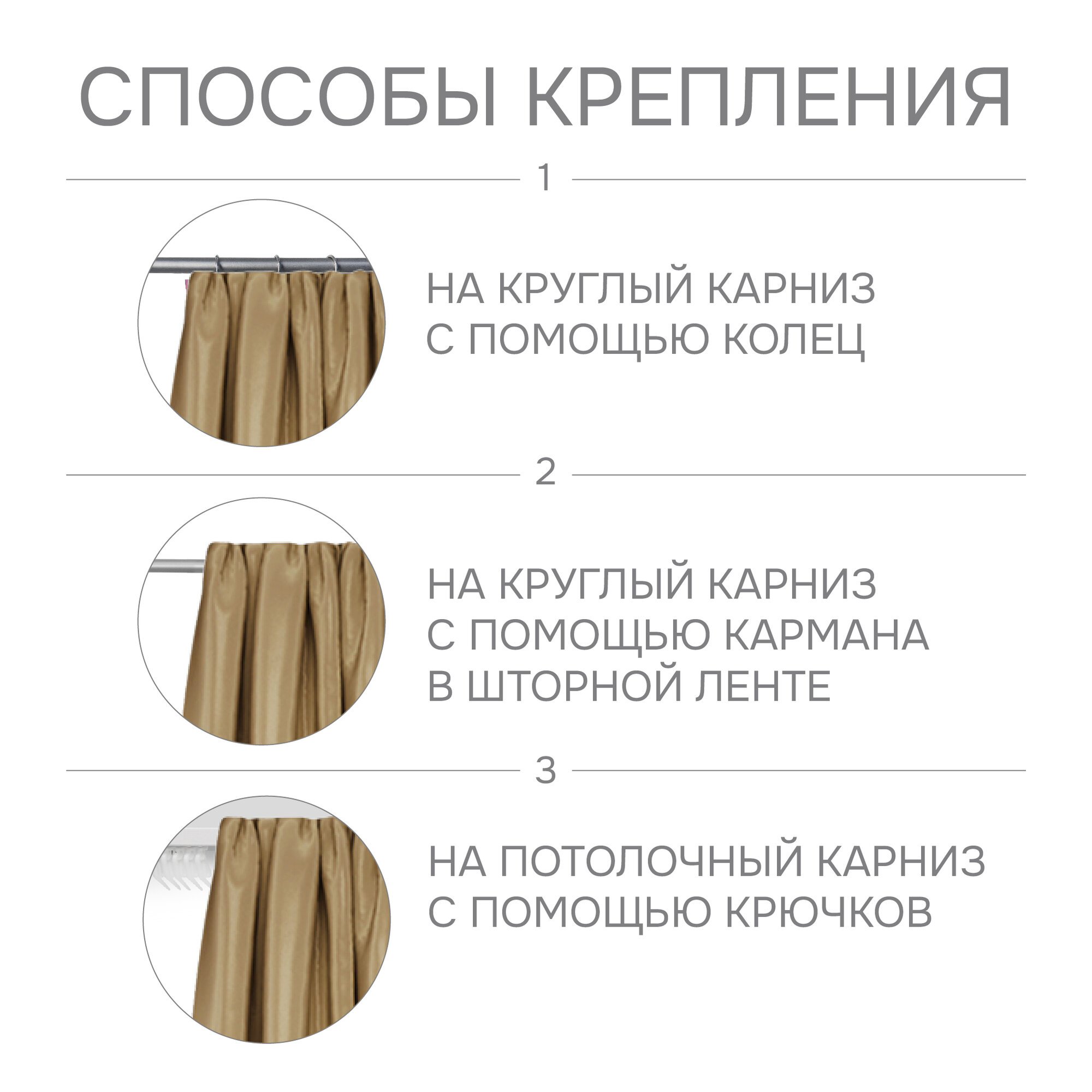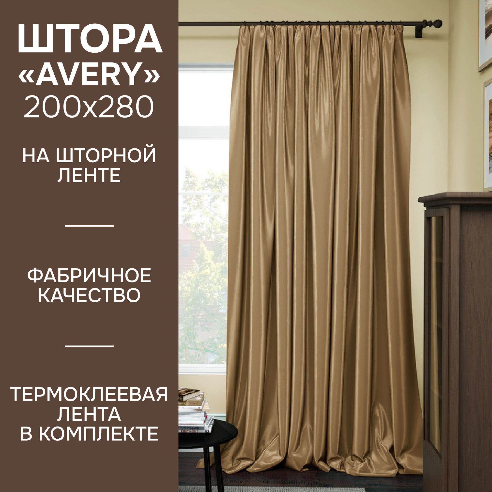 Штора на тесьме Avery 200х280 см, сатин, золотисто-бежевый, Kauffort