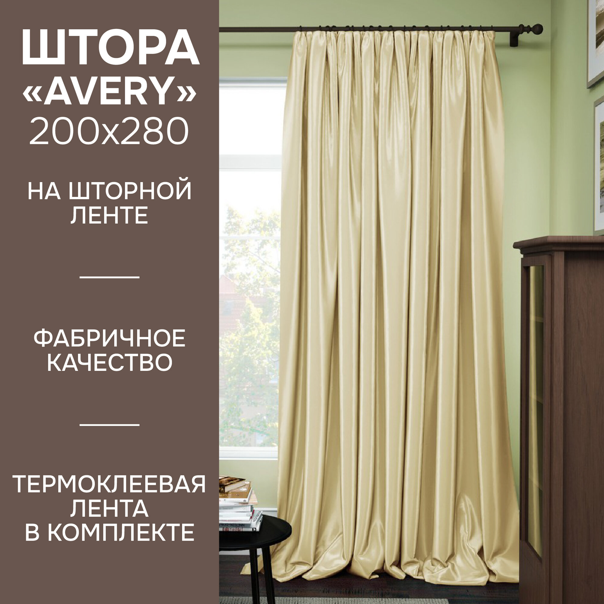 Штора на тесьме Avery 200х280 см, сатин, бежевый, Kauffort