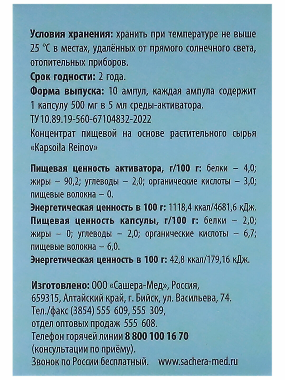 Купить Капсулы "Reinov" в среде-активаторе. При хронических патологиях почек и мочекаменной болезни, 10 капсул