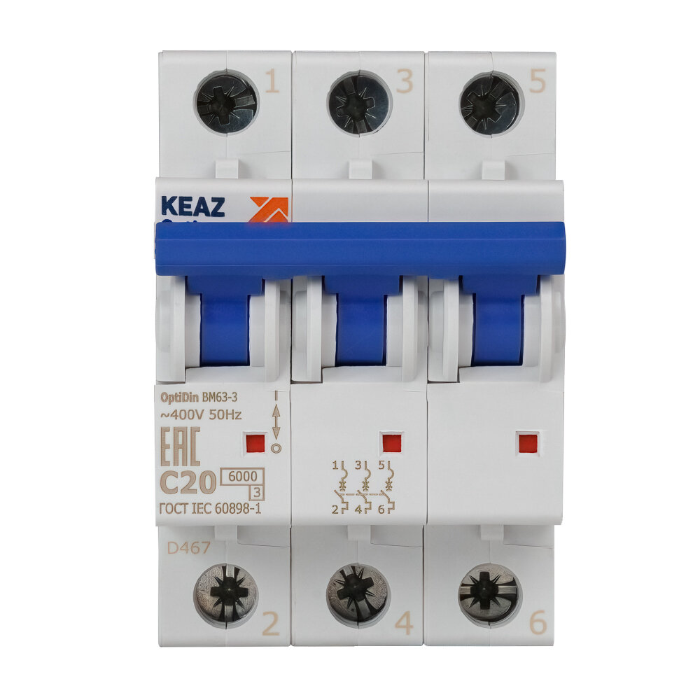 Выключатель автоматический модульный BM63 OptiDin 20А 3П трехполюсный C 6кА 260793 КЭАЗ