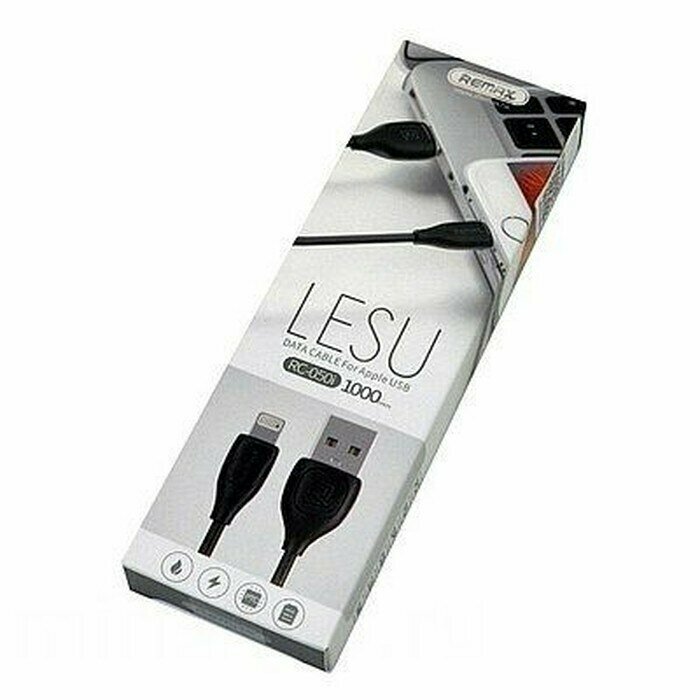 Кабель Remax Lesu USB - Apple Lightning (RC-050i), 1 м, черный