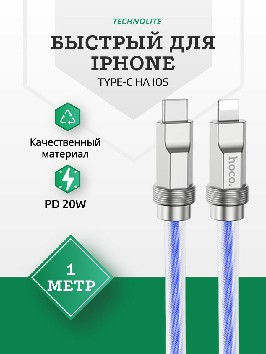 Кабель Hoco U113 Solid PD silicone charging data cable Lightning синий