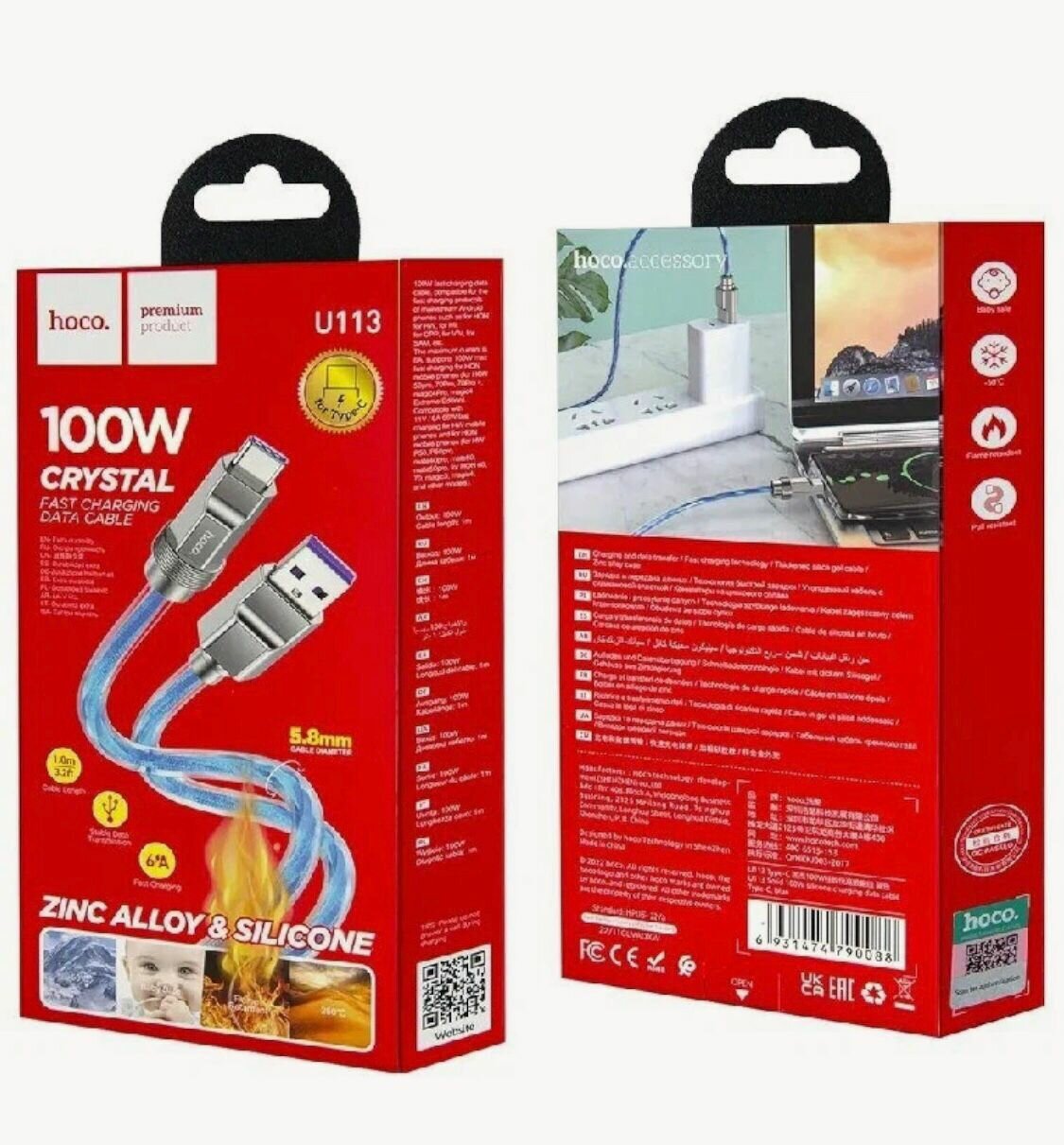 СохранитьКабель HOCO U113 Solid USB на Type-c, 100W 6A, 1 метр голубой с серым, для быстрой зарядки гаджетов и передачи данных интересное: