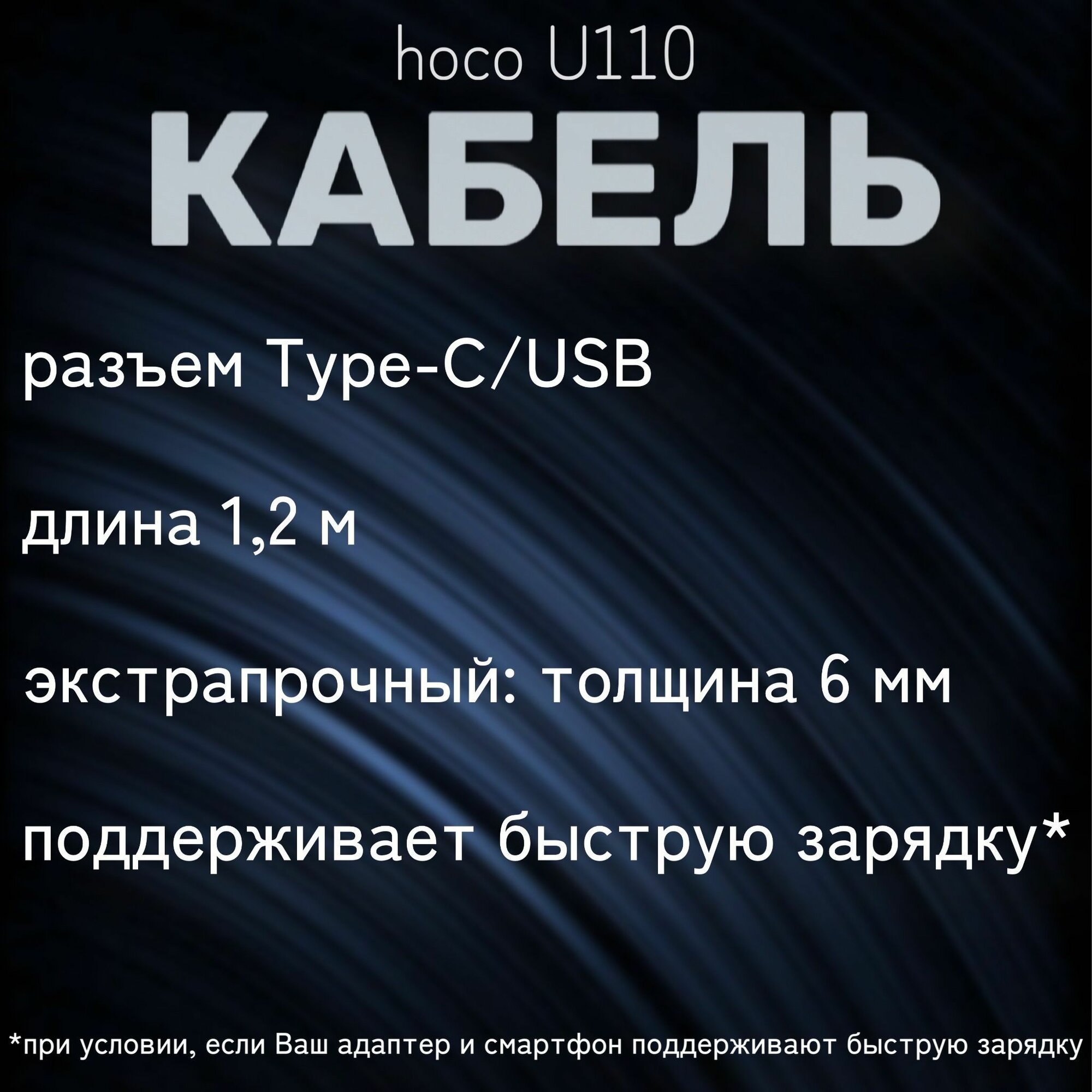 СохранитьКабель hoco U110 USB на Type-C, 1,2 метр, 3А, зарядка передача данных, тканевая оплетка, черный интересное: