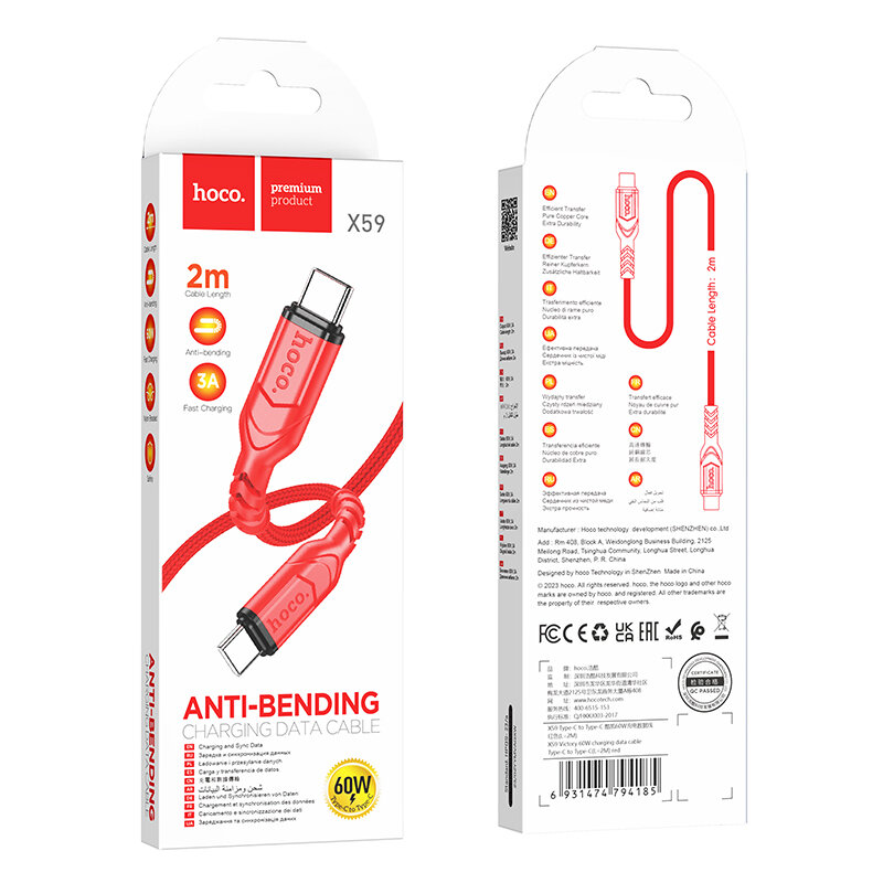 Купить Кабель Type-C на Type-C, HOCO, X59, 2м, красный
