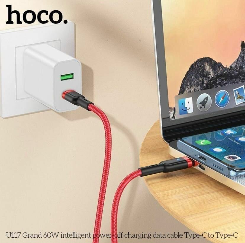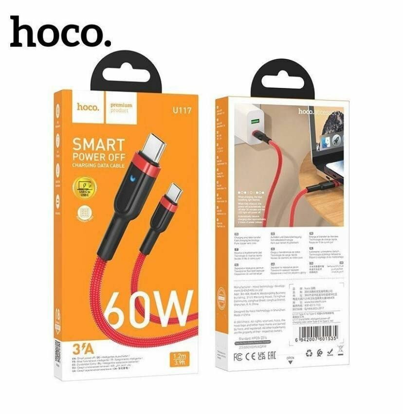 Купить Кабель Type-C на Type-C, HOCO, U117, 1.2м, 60W, красный