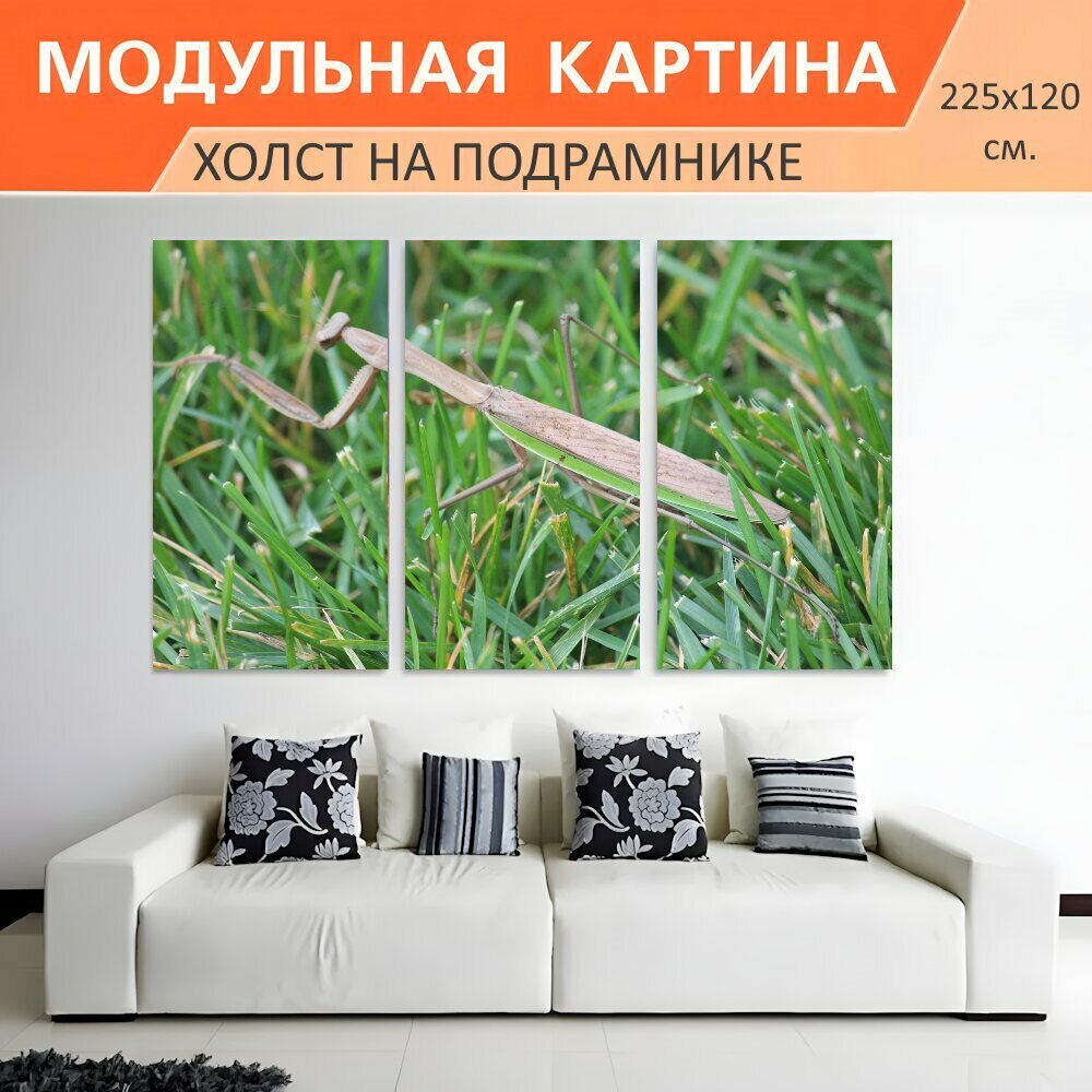 Модульная картина на холсте "Трость, насекомое, жук" триптих на подрамнике 225х120 см. для интерьера интересное: