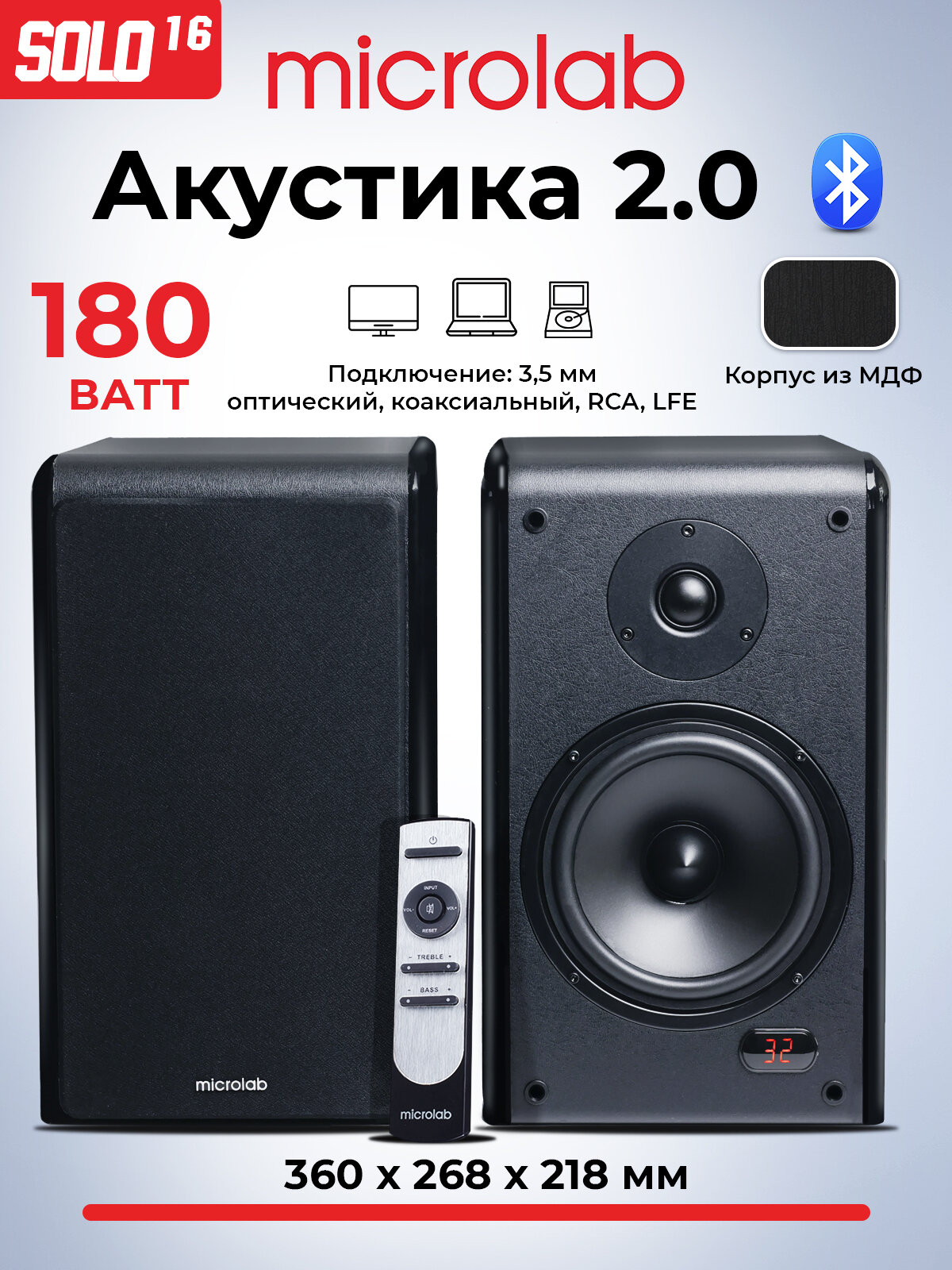СохранитьАудиосистема 2.0 Microlab SOLO 16 черный, bluetooth, 180 Вт интересное: