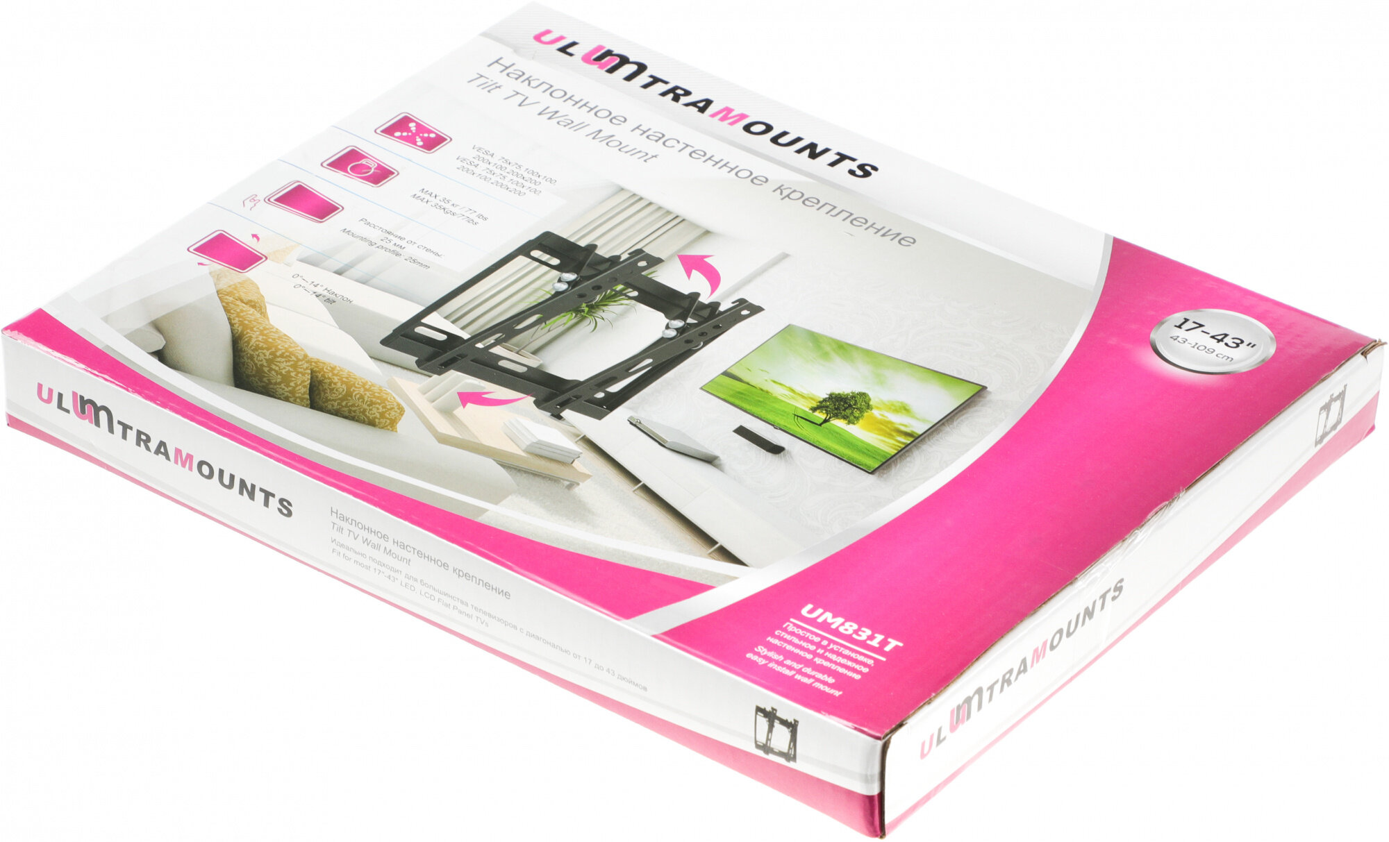 Ultramounts Кронштейн Ultramounts UM831T, для ТВ, наклонный, 17-43", 25 мм от стены, черный
