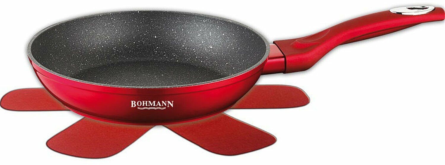 BOHMANN BH 1005-24MRB, Сковорода алюминиевая (диаметр: 24 см; цвет: красный; антипригарное покрытие; с текстильной подставкой)