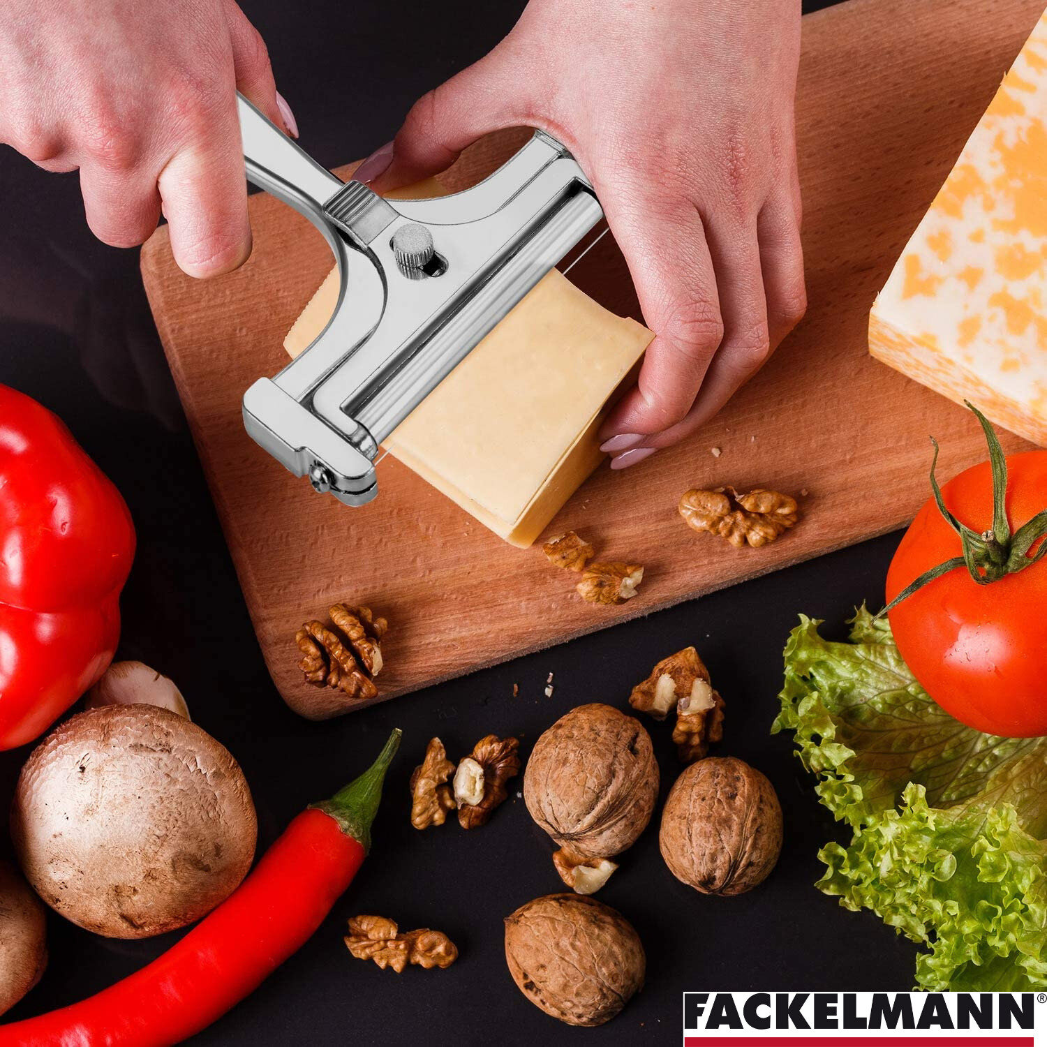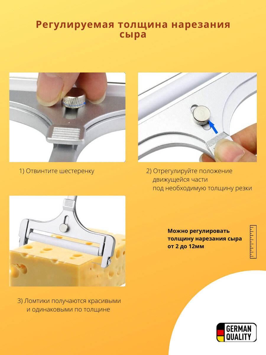 Сырорезка струнная для полутвердого сыра FACKELMANN ЭКО, 16 см, нож для сыра, сырорезка со струной, нарезание слайсами интересное: