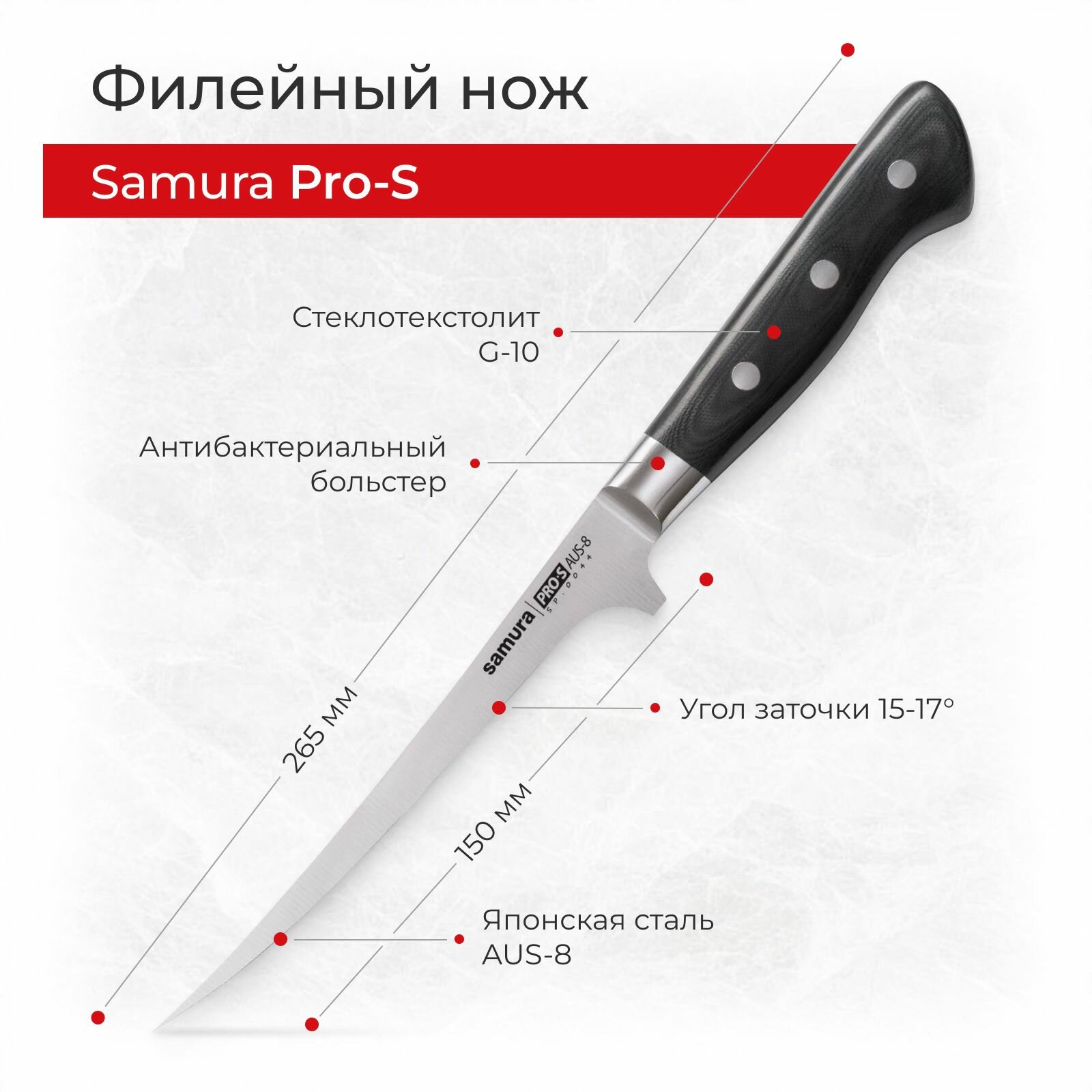 Нож филейный Samura Pro-S, лезвие 20 см