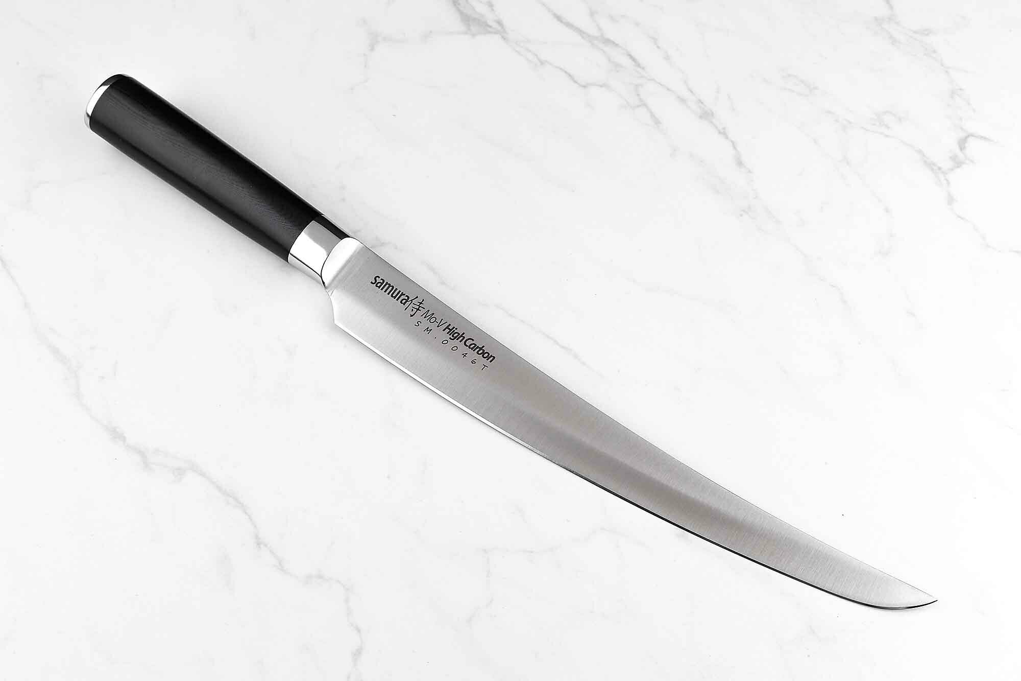 Купить Кухонный нож слайсер для тонкой нарезки Samura 23 см, японская ножевая нержавеющая сталь Aus 8, SM-0046T/K