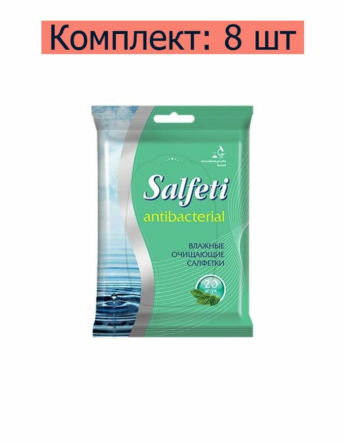 Влажные салфетки Salfeti антибактериальные, 20 шт., 8 уп.
