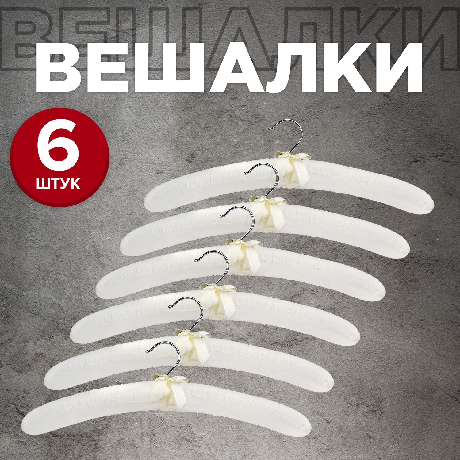 Купить Набор вешалок мягких тканевых 6 шт., белый 38*15*3.5 см