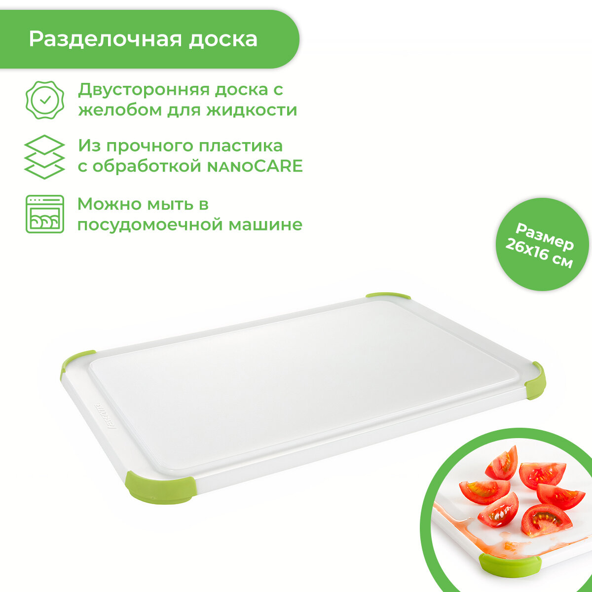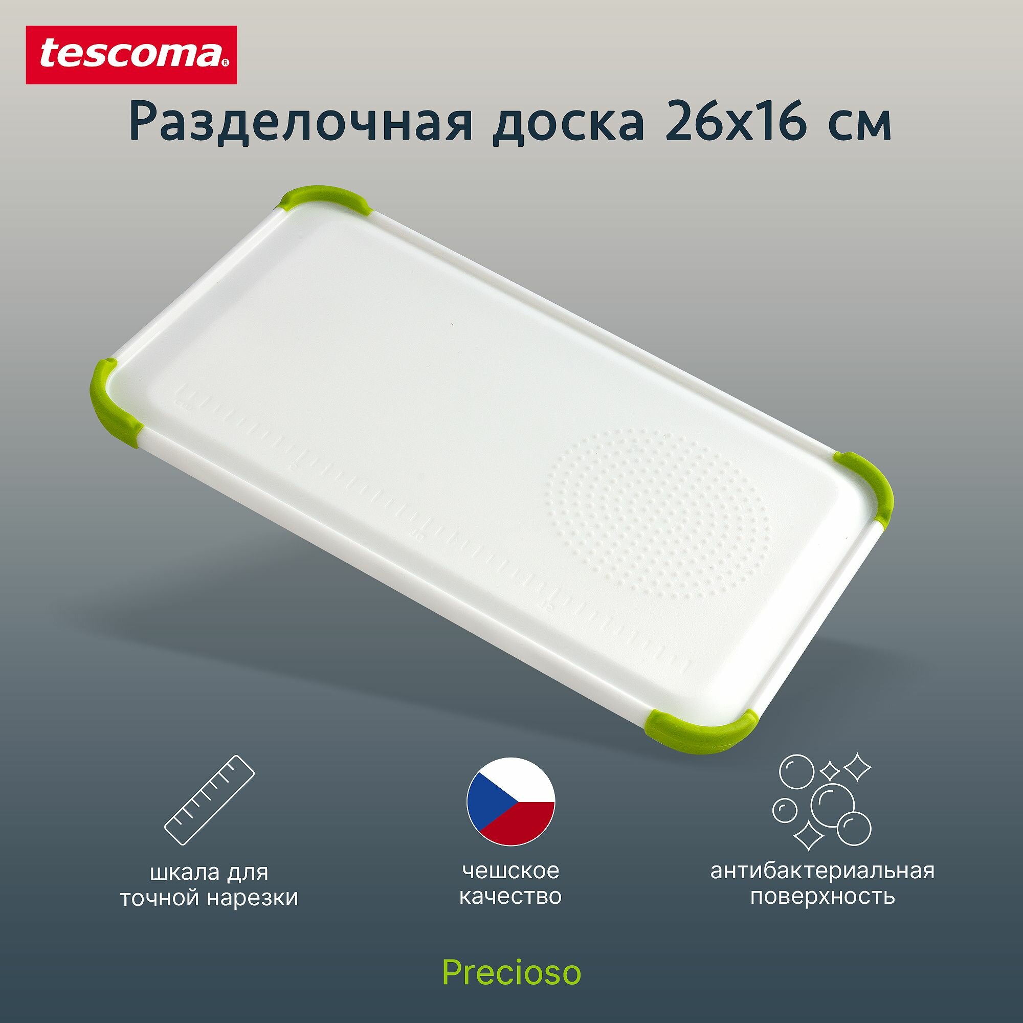 Разделочная доска "Tescoma Preciso", 26x16см, 1шт, пластик, белый/зеленый интересное: