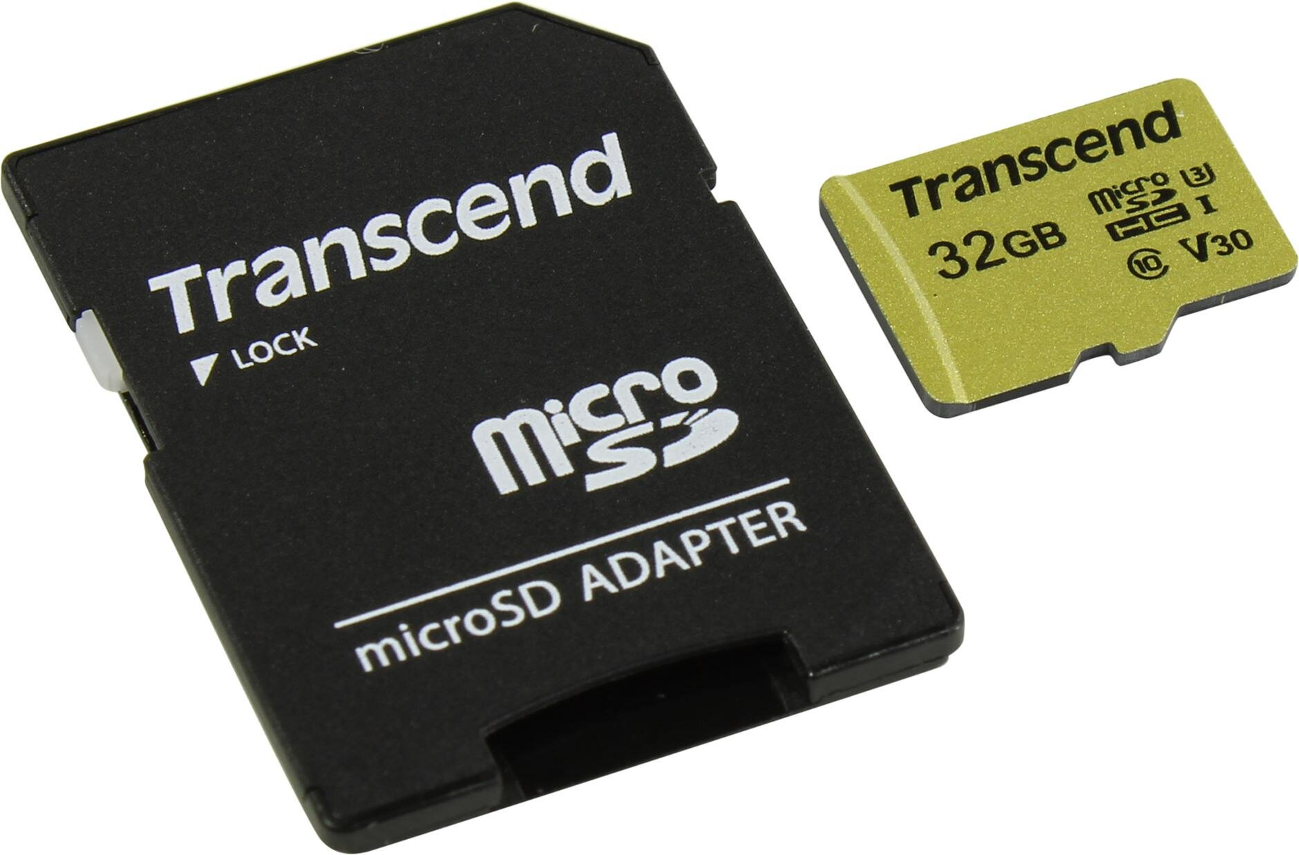 Карта памяти Transcend microSDHC 32 GB UHS-I U3, 95 Мб/сек, class 10, адаптер TS32GUSD300S-A