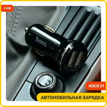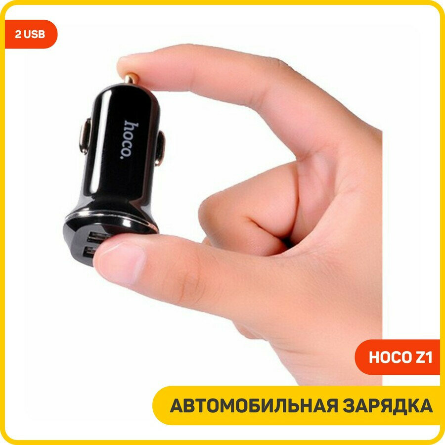 Автомобильное зарядное устройство Hoco Z1 Black зарядка 2.1А 2 USB-порта + кабель microUSB, чёрный