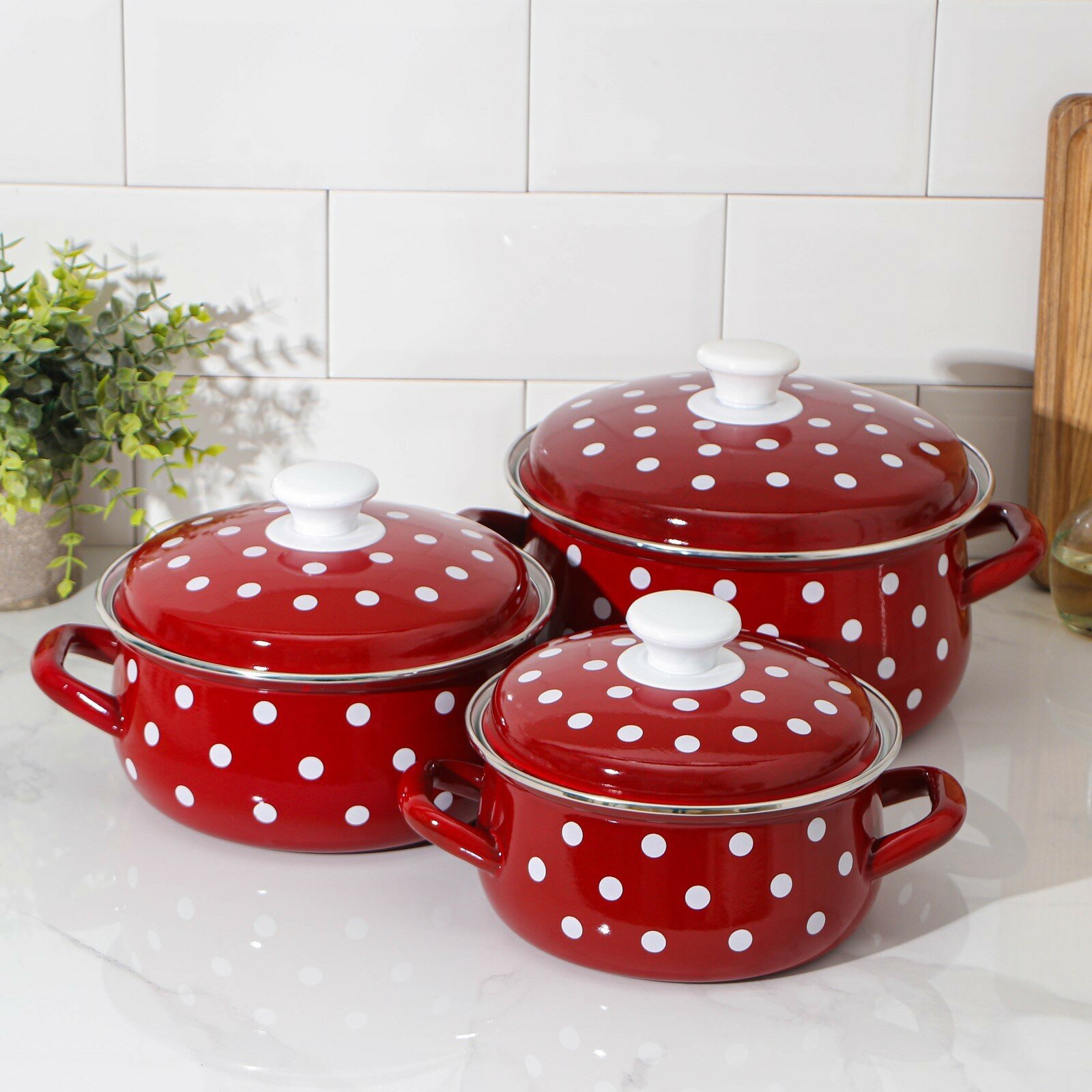 Набор кастрюль эмалированных Арабика, для индукции, с крышками, 1, 1,5, 2,3 л
