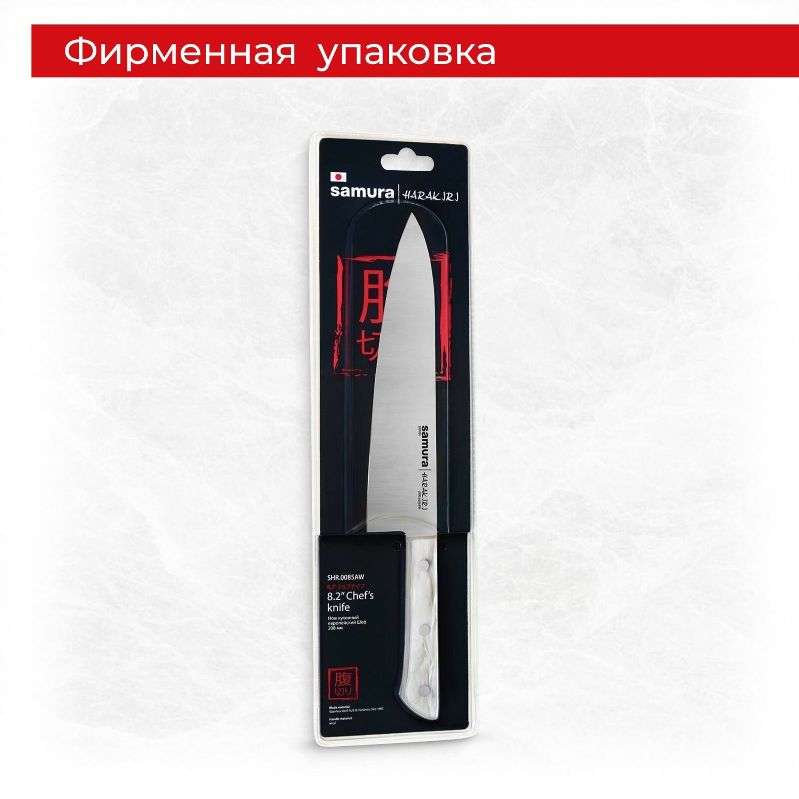 Шеф нож кухонный Samura HARAKIRI SHR-0085W, 20.8 см, белый