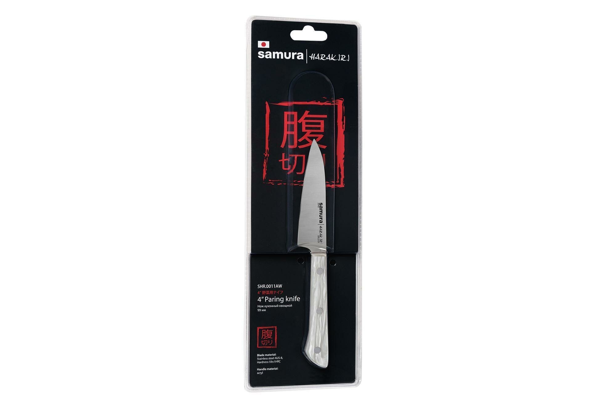 Нож кухонный овощной Samura HARAKIRI SHR-0011AW/K овощной 99 мм, корроз.-стойкая сталь, белый акрил