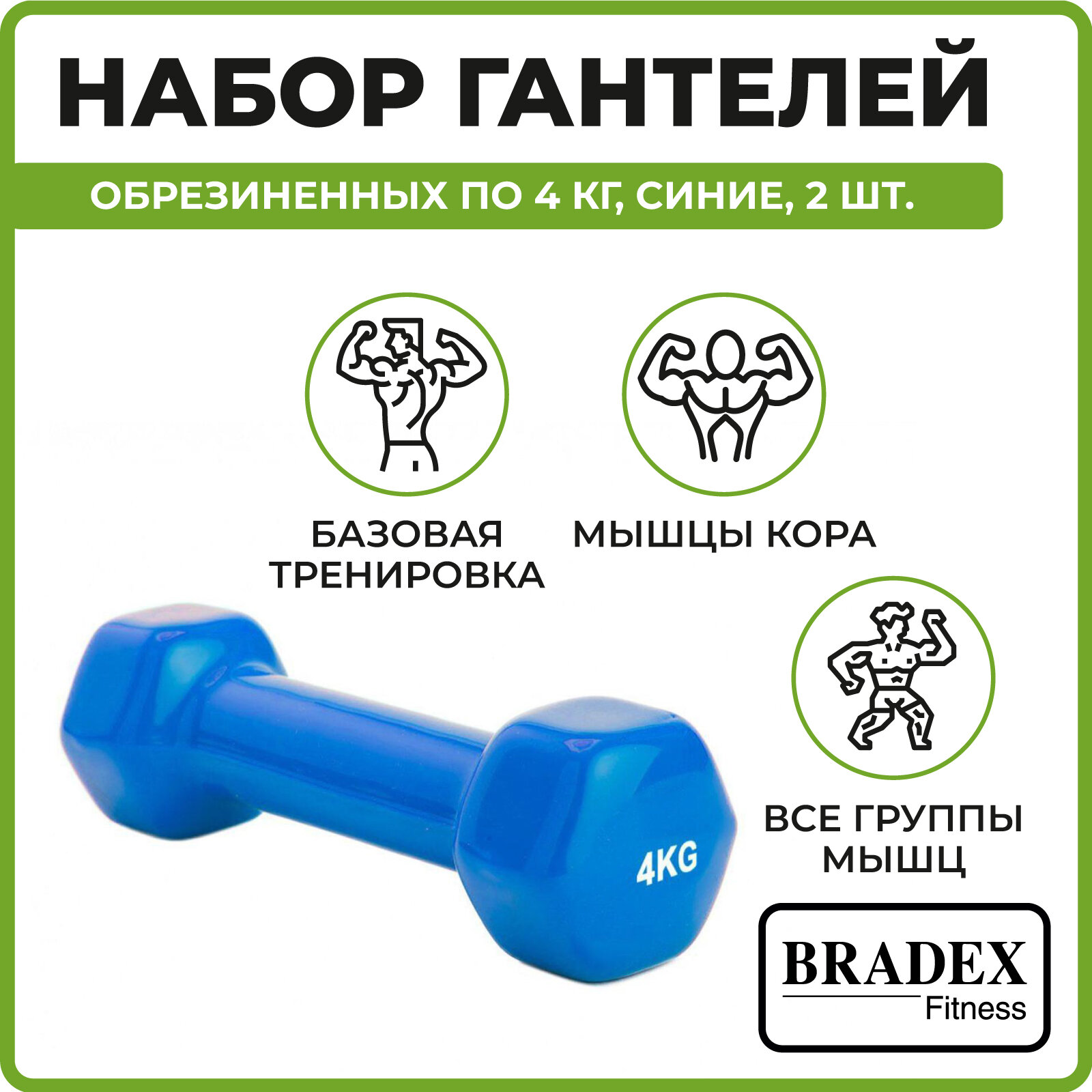 Купить Набор гантелей обрезиненных Bradex по 4 кг, синие, 2 штуки