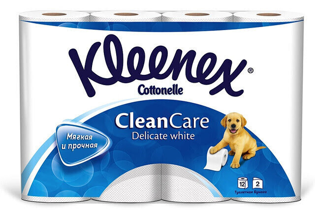 Туалетная бумага Kleenex Clean care Delicate 2-х слойная, 12 рулонов
