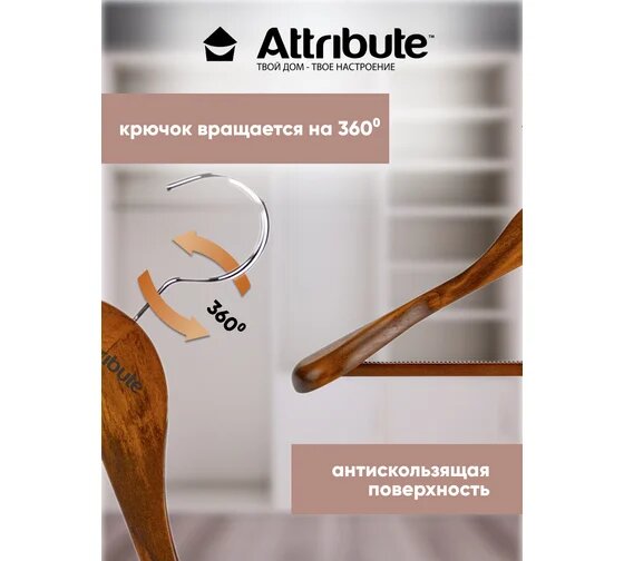 Вешалка - плечики для верхней одежды Attribute Hanger "Status", цвет: дерево, длина 44 см - Атрибут вашего дома