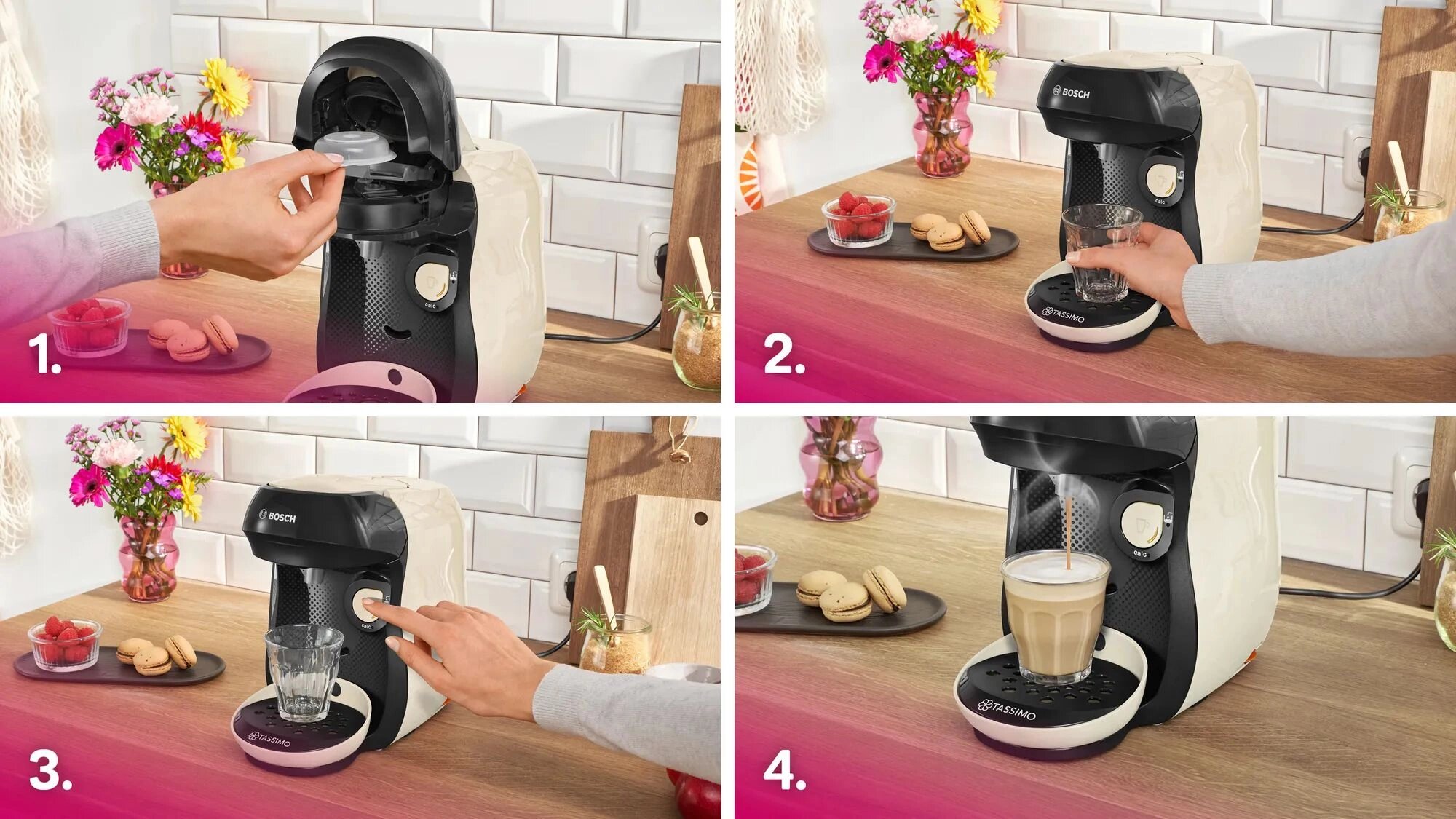 | Плюсы: | Кофеварка капсульная Bosch Tassimo Happy TAS1002 очень проста в использовании. По шумности как и любой кухонный прибор, не напрягает. На всех капсулах штрих-коды, поэтому кофеварка сама определяет сколько необходимо воды. |