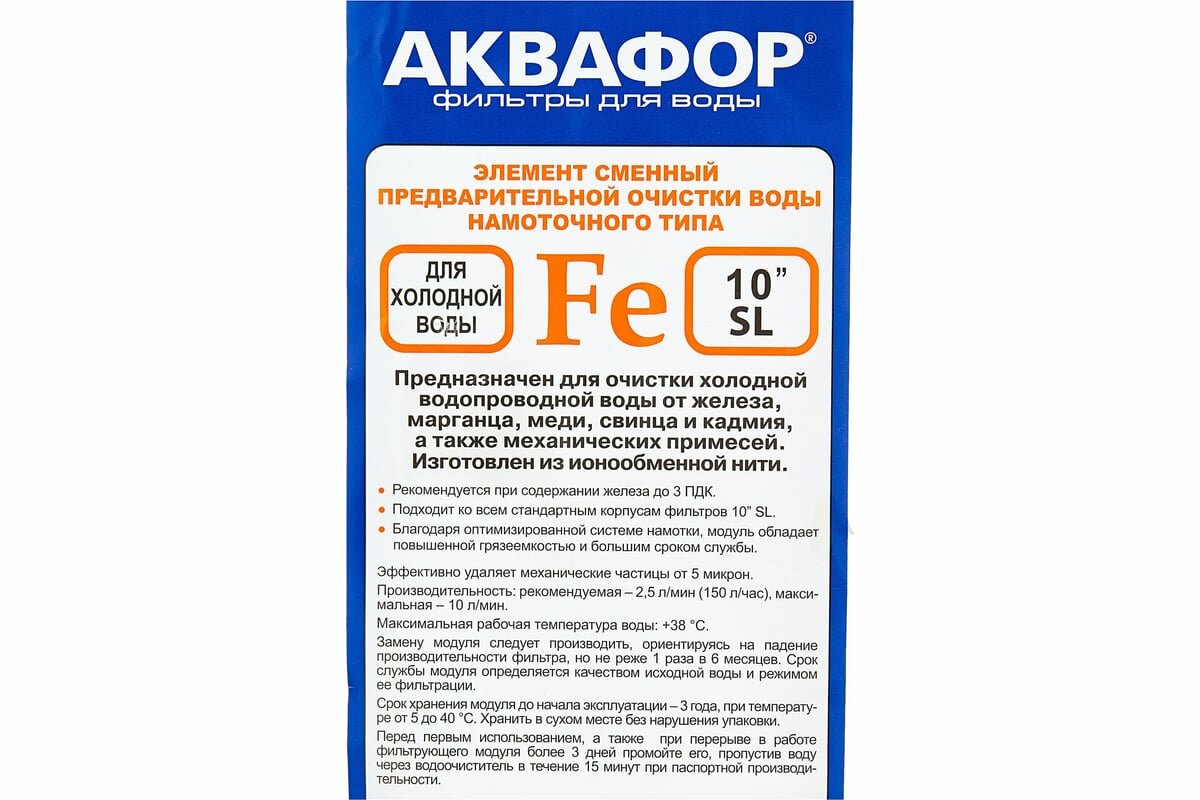 Сменный модуль для систем фильтрации воды Аквафор Fe (для х/в) 10SL