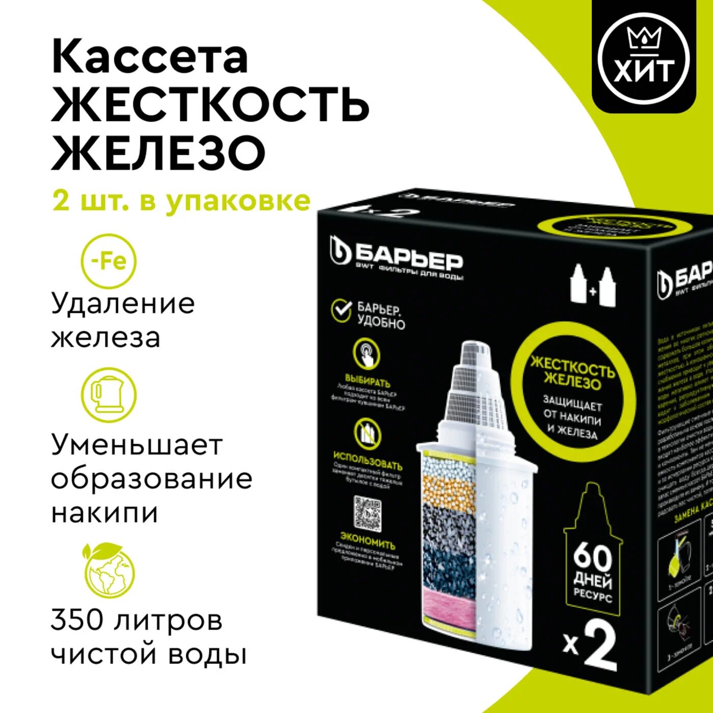 Картридж сменный БАРЬЕР Жесткость Железо, 2 шт, защищает от накипи и железа
