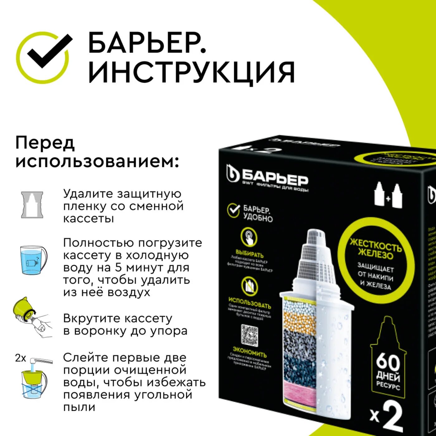 Комплект кассет для фильтров-кувшинов барьер Жесткость Железо, 2 шт, защищает от накипи и ржавчины