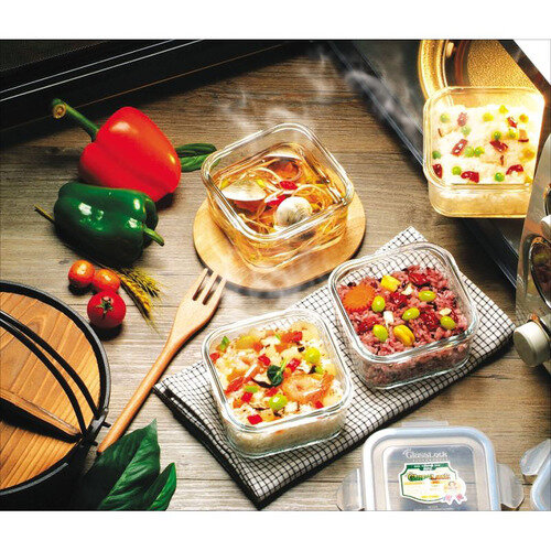 Купить Набор контейнеров для приготовления, хранения и запекания Glasslock GL-530 Yellow (1615ml, 900ml, 400ml; квадратные); закаленное стекло; для духовки; жаропрочный