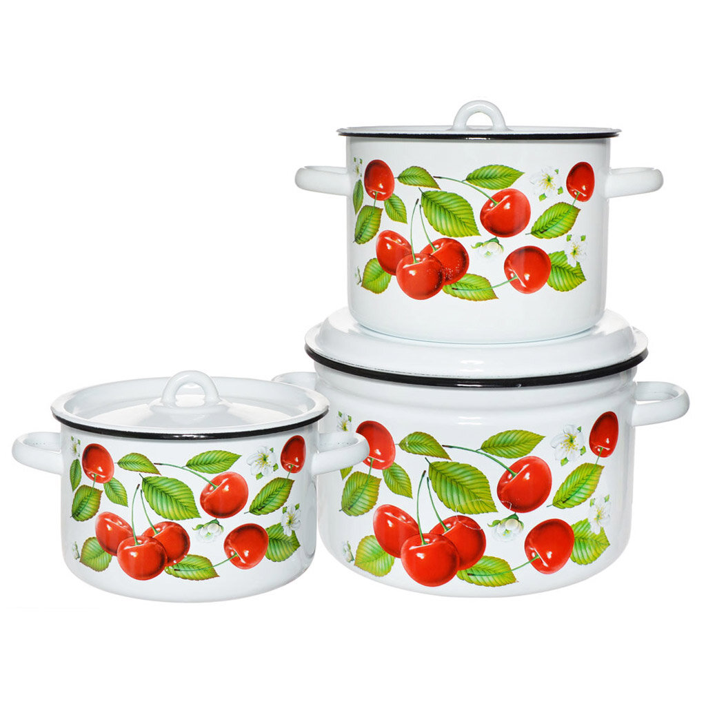 Набор эмалированных кастрюль Черешня 2.0/3.0/4.0л