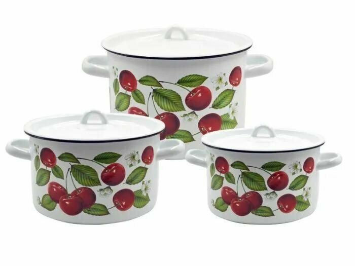 Набор кастрюль эмалированных 1,5л,2,9л,4,5л Вишня ягоды СтальЭмаль