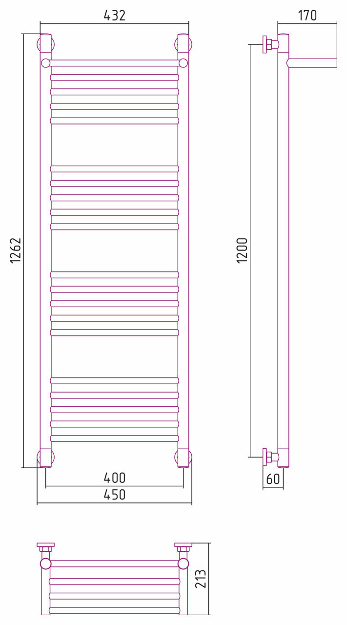 Полотенцесушитель водяной Сунержа, ДР “богема 1П “ 1200х400 (Без покрытия)