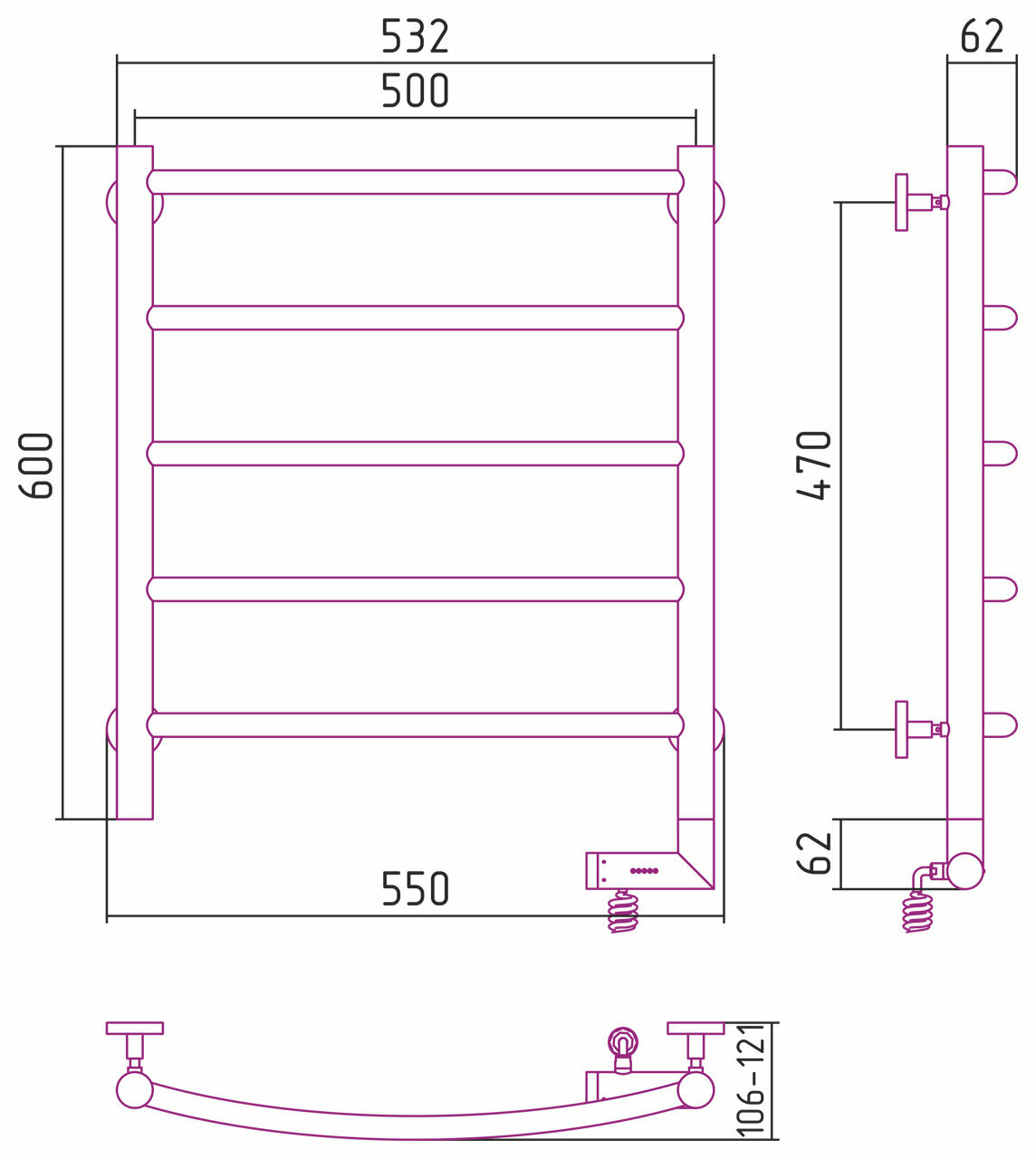Полотенцесушитель Электрический Тругор Пэк сп 5 П 60х50 черный ВГП