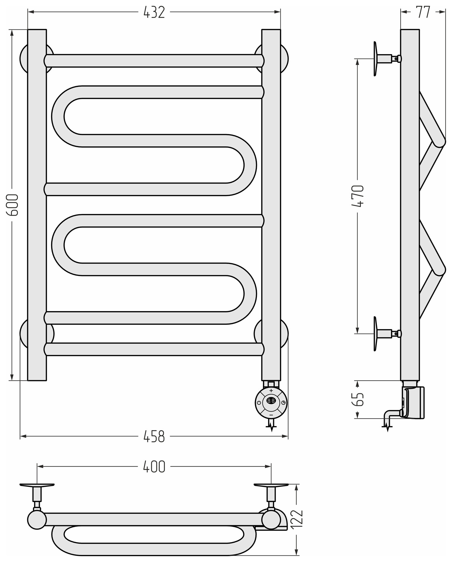Полотенцесушитель Электрический Тругор Пэк сп 5 П 60х50 черный ВГП