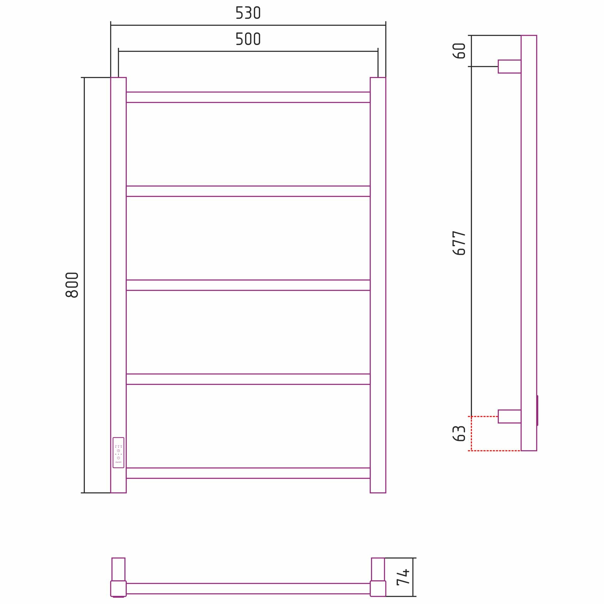 Полотенцесушитель электрический Стилье Формат 26 800х500 правый Белый