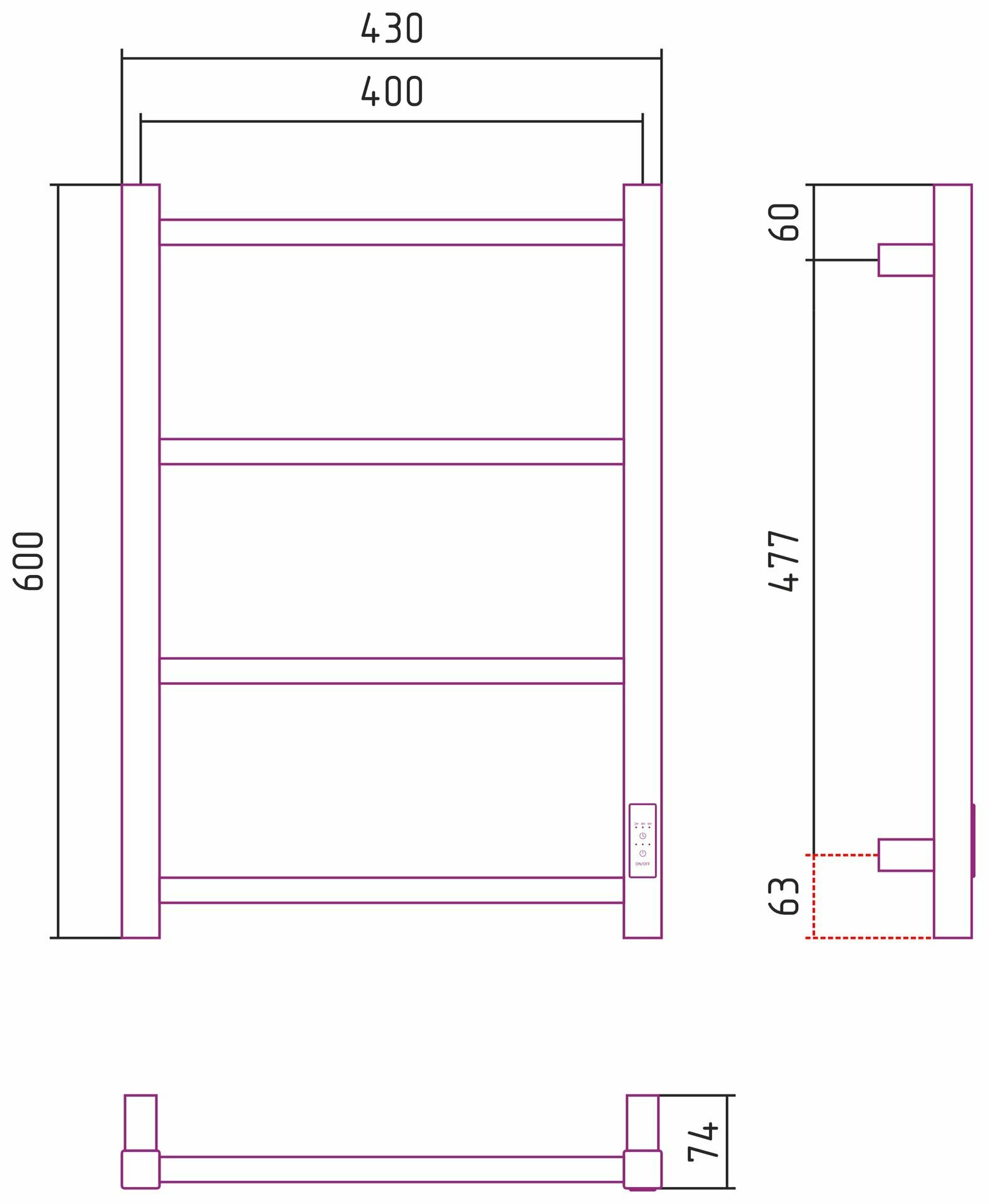 Полотенцесушитель электрический Стилье Формат 26 600х400 правый Матовый чёрный