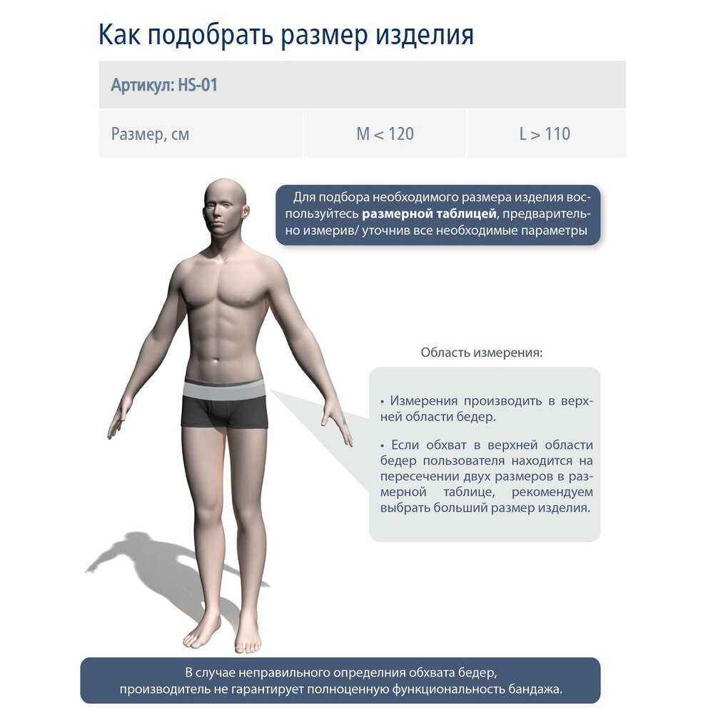 Бандаж грыжевый паховый HS-01, M, до 120 см