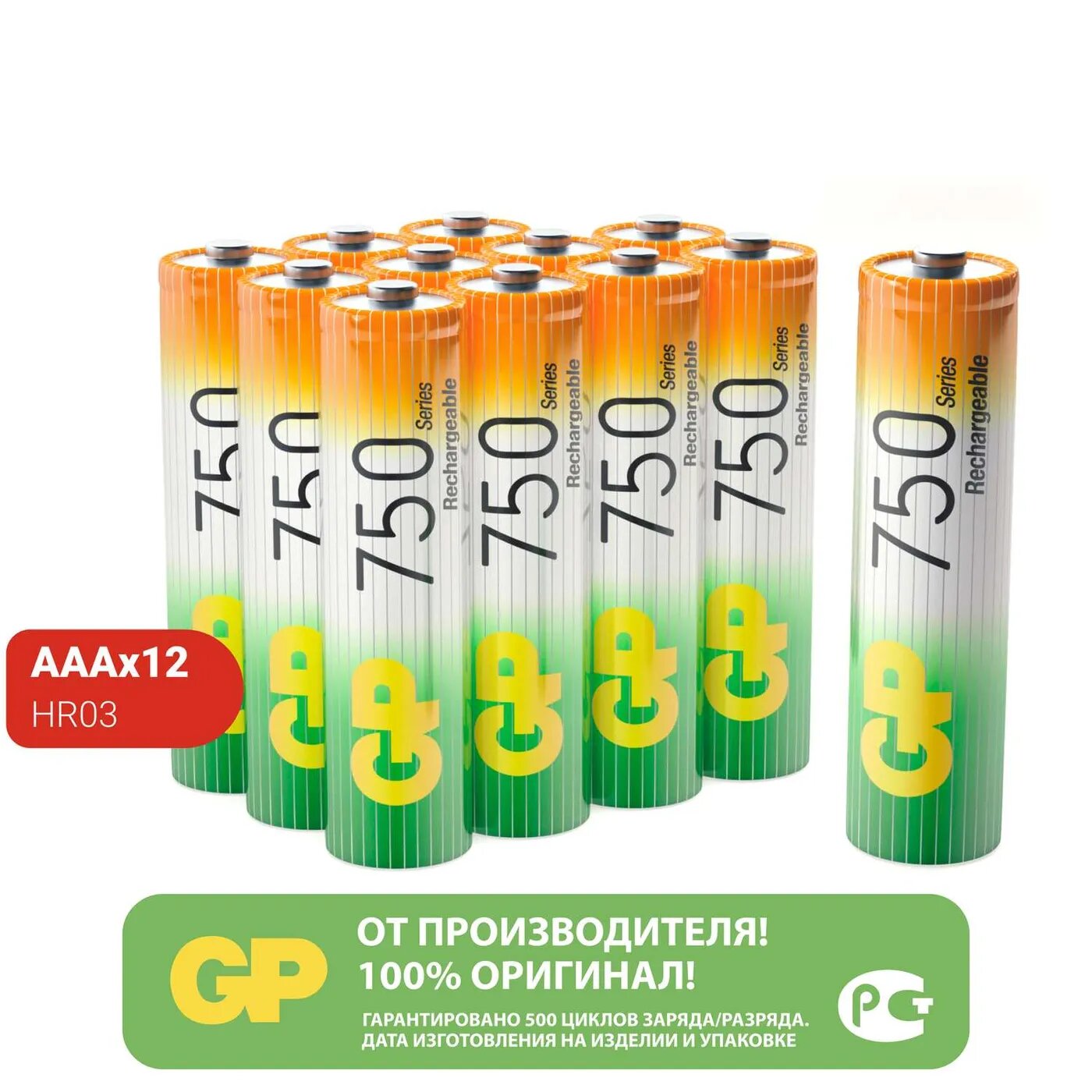 Купить GP Батарейки ААА аккумуляторные мизинчиковые, аккумуляторы 750 мАч Ni-Mh, набор 12 шт
