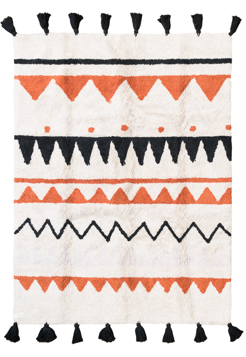 Ковер на пол в спальню, гостиную, детскую белый, оранжевый 1,4 на 2 м Lorena Canals Cotton Azteca Natural C-AZ-NTE