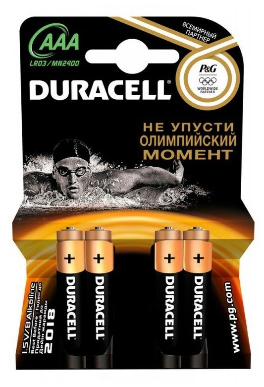 Батарея Duracell Basic, AAA (LR03/24А), 1.5V, 4 шт. (LR03-4BL)