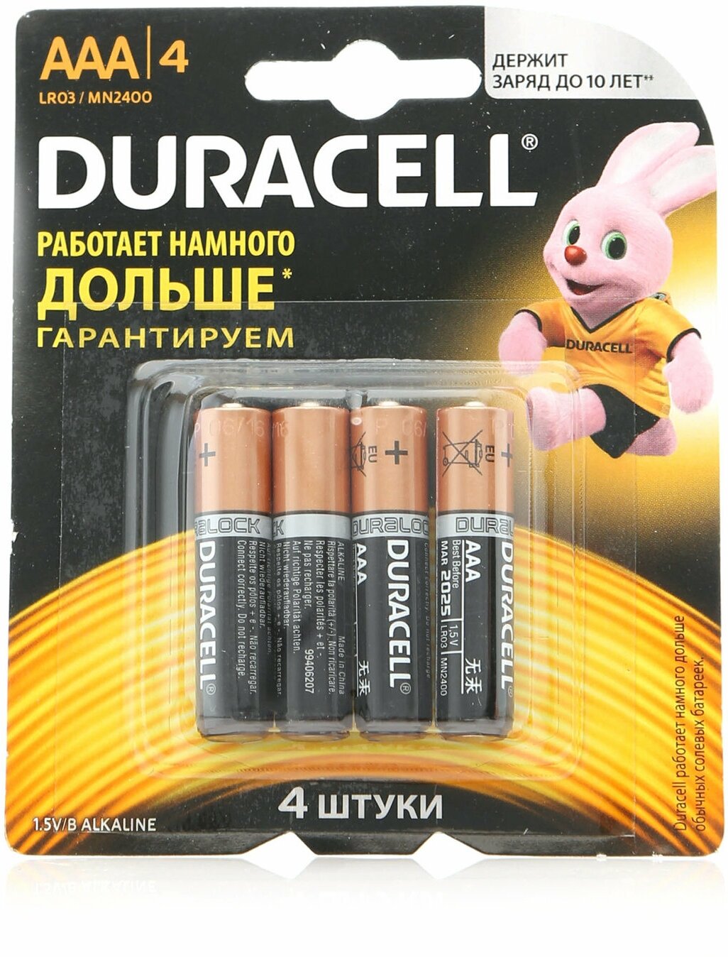 Элемент питания DURACELL LR03 BL2 BASIC CN (Новый дизайн) (2/24/96/14592)