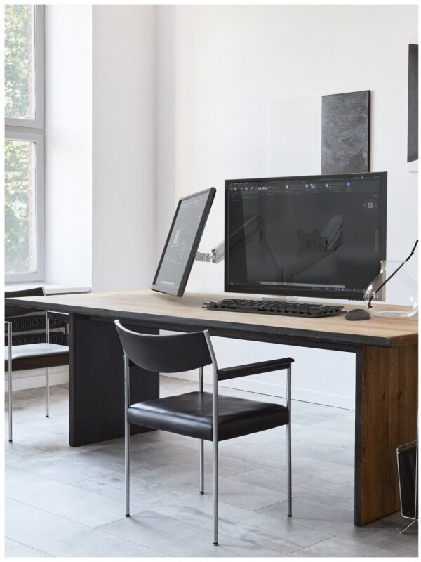 СохранитьКрепление ONKRON G200 для двух мониторов 13"-32" настольное, 2 по 9 кг, газлифт, белый интересное: